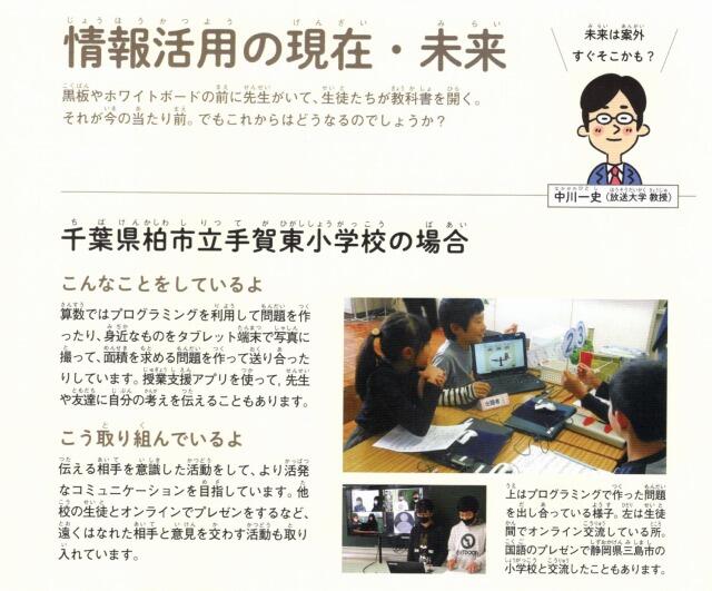 手賀東小は児童数が少ない学校ですが,ICTを活用することで学校外の人とたくさんつながり,学ぶ機会を増やしていきたいと思っています。(校長 佐和)