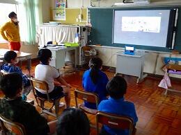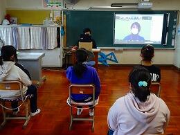 本校の卒業生ですので,画面越しでも久しぶりに顔を見ることができて,子供たちもうれしそうでした。