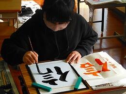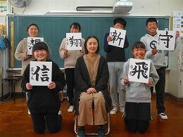 色紙に自分の好きな文字を書き,できあがった作品は卒業式会場にも掲示します。