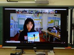 校長室と各教室を結び,ホストを交換して担当が教室から子供の名前を呼びます。