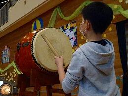 3種類の太鼓を使い,みんなリズム良く,楽しそうにたたいていました。