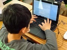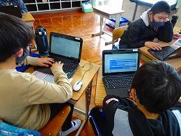答えには解説を付けたり、工夫した誤答を考えたり、楽しみながらパソコンを操作し、情報活用能力を高めていました。(4年担任 丸山)