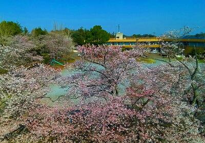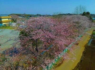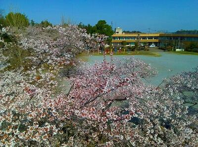 校庭の桜は,子供たちが来る前に満開を迎えました。