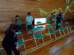 本日の清掃の時間には,2年生から6年生が会場準備を手伝ってくれました。