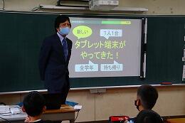 タブレットを使って学習を深めたり,広げたいする活動は,これからの社会で活躍できる人材の育成につながるものと考えています。(校長 佐和)