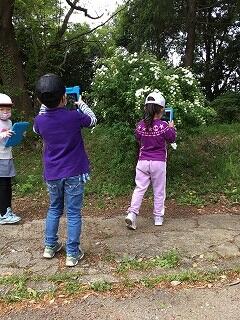 4年生 理科 校庭の動植物を撮影し,校地内マップにマーキングして発表する。