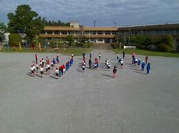 広い運動場に少人数の児童なので,全校で集まることもできます。