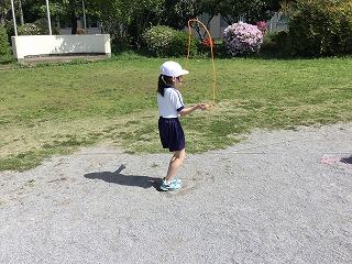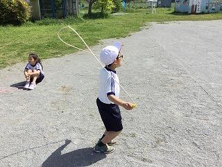 昨日は体育で縄跳び練習しました。腕の回し方、跳ぶ速さなどを意識して練習しました。