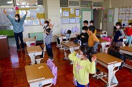2年生から6年生まで,今日は全員学校に来ました。