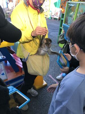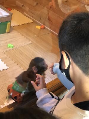 特別に猿との記念写真を撮らせてもらったり、子猿を触らせてもらったりして、たいへん貴重な経験ができました。