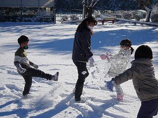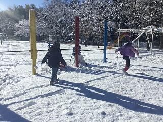 久しぶりに友達に会えたうれしさと、雪が積もったうれしさで、子供たちは大はしゃぎでした。