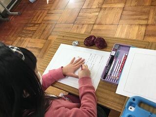 むかしあそびの遊び方について説明書を書きました。作文用紙、タブレットでもドキュメントやスライドと子どもたち自身で選び説明書を作っています。文章を書くときには相手意識を持ち取り組んでいいます。はたしてどんな、説明書ができるのかが楽しみです。(第2学年齊藤)