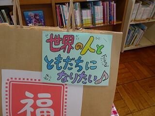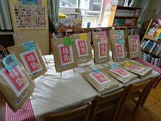 メディアルームに、図書の先生と図書委員会の子供たちが用意した福袋がたくさんありました。