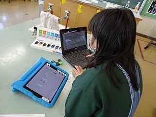 コロナ感染拡大の状況においては、このような体験型の授業を行うことは難しいのですが、本校は児童数が少なく、端末やセンサーなどを1人1セットで使うことができるので、実現することができました。