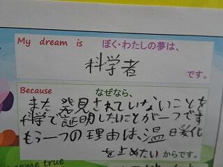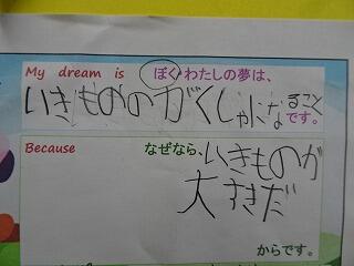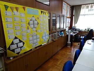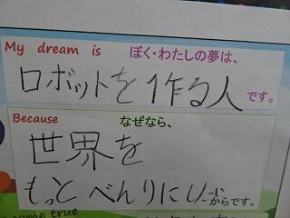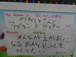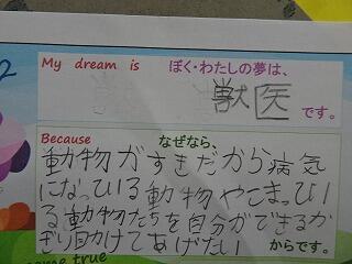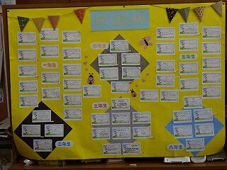 始業式に全校の子供たちに聞いた「夢」を校長室に掲示しました。