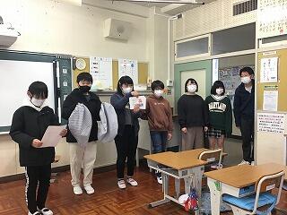 旧会長から新会長へ,今年度の児童会だよりが手渡されました。
