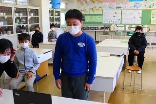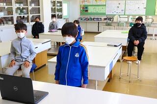 2月24日(木)の昼休み,オンラインで児童会引き継ぎ式を行いました。