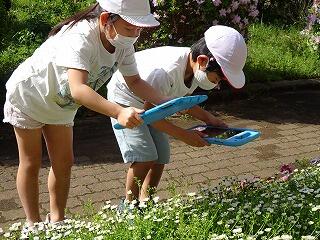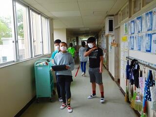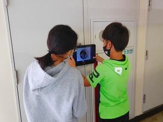 6年生は,校内でよごれているところを探し,タブレット端末で撮影しました。床のよごれやトイレの掃除用具入れなど,細かいところに気付きました。