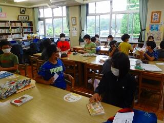 図書館指導員から,鎌倉の本の紹介がありました。子どもたちは,鎌倉にある食べ物はもちろん,鎌倉の歴史についても興味をもち始めていました。5・6年生の教室前に,鎌倉についての本がたくさんのっているブックトラックを置いてもらったので,すぐに手に取ることができます。