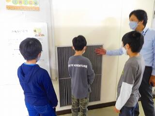 グループで撮影してきたものの中から3つを選んでスクリーンに映し,「ここはどこでしょう」クイズをしました。よごれている部分をかなりアップで撮影していたので,とても難易度が高かったです。ほこりがたまっていたり,ぞうきんでふいても落ちないような黒いよごれがついていたりしました。
