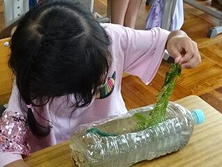 今日は、ペットボトルの中の水草からたまごを取り出して調べる時間です。
