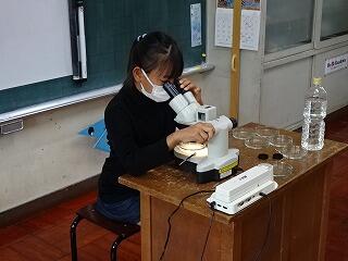 5年生が「メダカのたんじょう」の単元でたまごの観察をしていました。