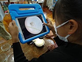 たまごを見つけたり、顕微鏡で大きくしたり、iPadで撮影したりして、みんな大騒ぎです。