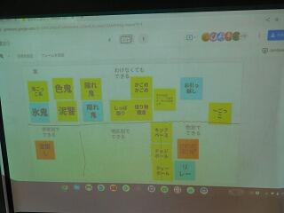 次に,どんなレクならみんなで楽しめるかを,またジャムボードを使って話し合いました。コロナ禍の観点から危険なもの,全校で行うのは難しいものはやめた方がいいということも,自分たちで考えました。
