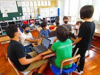 それぞれのチームに分かれ,説明の方法を考えているところです。ドキュメントで共同編集をして台本を考えたり,他の学年のためにルール説明の紙を作ったり,積極的に動いています。