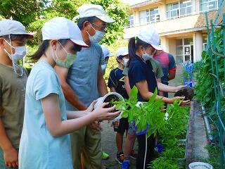 また、各地区の畑で行っている「全校地域学習」も、作物の世話や観察が必要となっています。