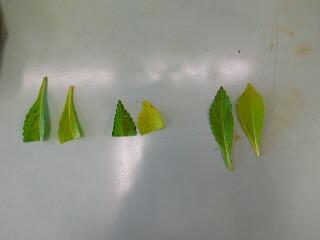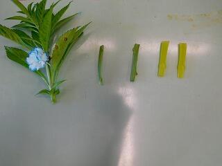 色のついた水に入れていた方は,くき,葉,花に色がついていました。
