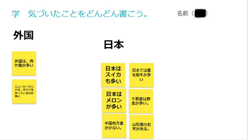 結果は学習係がすぐに写真で撮ってくれて,みんながドキュメントに結果としてその写真を使うことができました。