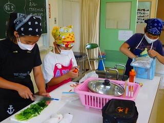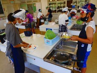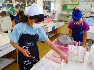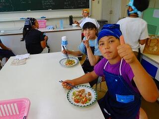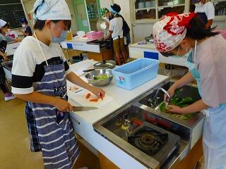 6年生 初めての調理実習! 野菜いため 投稿日時 : 2022/06/29 手賀東小学校管理者 6年生は初めての調理実習でした。昨年度はコロナ禍で,この学年は学校で調理実習をすることができませんでした。 今日は,換気をする,一人ひとりが一品つくる,調理器具を使ったら洗ってから次の人が使う,できたものは,同じ方向を向いて黙食するなどのルールを決めて行いました。 初めてだったのに,班で準備や片付けを協力して,目標時間までにつくることができました。 みんな,きれいでおいしそうな野菜いためを作っていました。 保護者の皆様,計画の確認や材料の準備など,ご協力ありがとうございました。 (6年担任 戸沢) {{options.likeCount}} {{options.likeCount}}