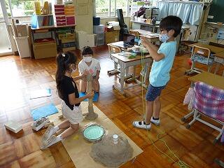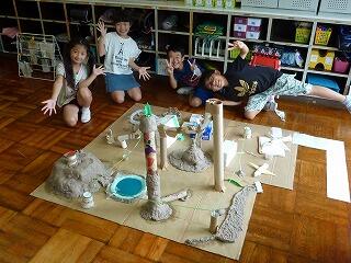 「ここは,こんな形にしよう。」「もっと大きな火山にしよう。」