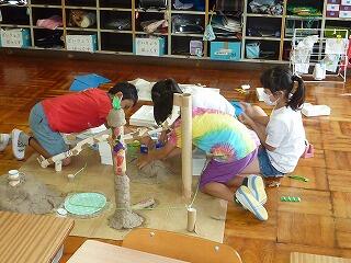 子どもたちは,いろいろなアイディアを口にしながら,粘土を使って形にしていきます。