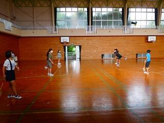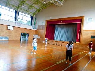 1時間目はお楽しみ会。体育館でバドミントンとドッジボール,教室ではジェスチャーゲームなどをしました。