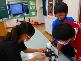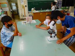 2時間目は,理科で以前に学習した微生物を顕微鏡で見ました。理科支援員と担任が用意した手賀沼やビオトープなどの水から,好きなものを選んでグループごとに顕微鏡をのぞきます。