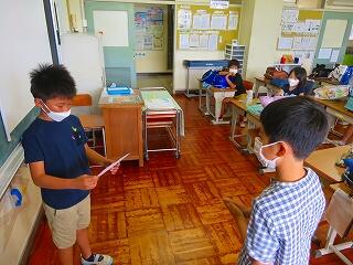 コロナ感染の拡大や熱中症の心配から、今回もオンラインでの終業式としました。