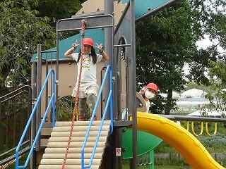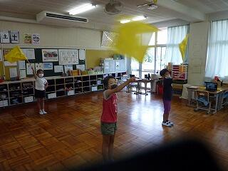 「いっしょにやる?」と声をかけると,「うん!」とうれしそうにフラッグを持ってきました。