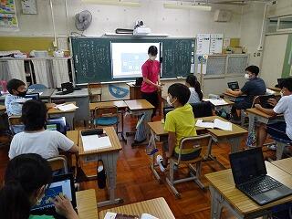 幸い、台風の影響はあまり大きくなかったため、始業時刻前にほとんどの子供は保護者の車で登校してきました。登校できなかった子供は、オンラインで授業に参加しています。