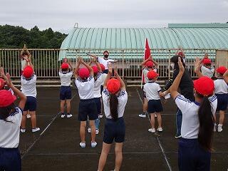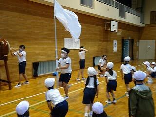 (今年の全校ダンスは,フラッグを用いたダンスです。)
