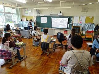 よく見ると,2年生が後ろのドアから「わたしたちもやりたいなー」という感じで,のぞいていました。