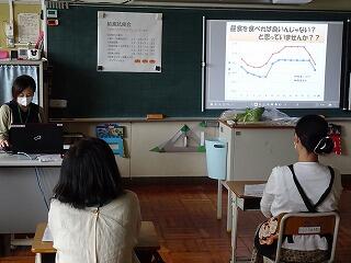 また、1・2年生も、栄養士さんに食事の大切さをお話をしてもらいました。(校長 佐和)
