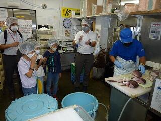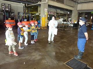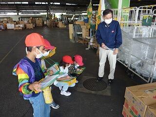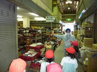 バスの中では,クイズやなぞなぞ,イントロあてなどをしているうちに,第一目的地の柏市公設市場に到着。