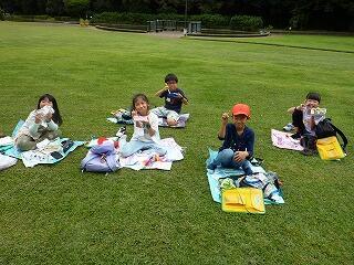 あけぼの山農業公園の芝生広場で,おいし~いお昼タイム。