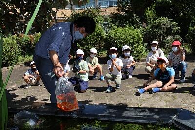 校に在籍している子供のおじいさんのお声かけで、白井でペットショップをされている方から、金魚をたくさんもらいました。