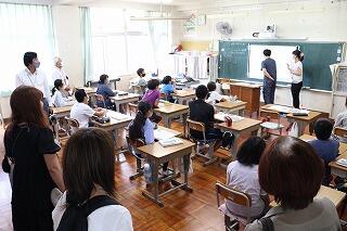 学校の状況についてご説明した後、校内をまわり、全クラスを参観してもらいました。
