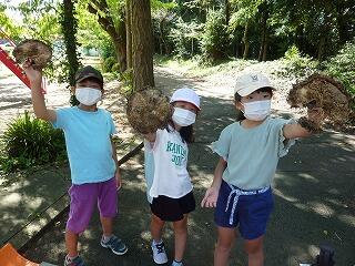 今日は1~3年生で,1学期植えたひまわりの種取りをしました。