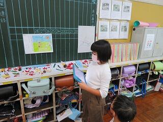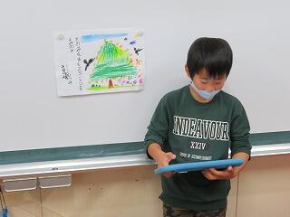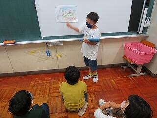 一番心に残ったところを絵に描いて、描いた絵の前で本の説明をしたり、質問に答えたりして、