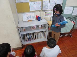 発表を聞いている人たちは、紹介された本に興味をもっていました。